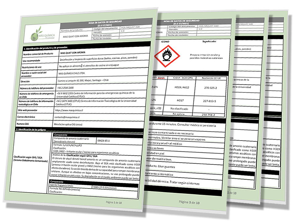 Para elaborar cada Hoja de Datos de Seguridad (HDS), solicitamos la colaboración del cliente mediante una ficha técnica del producto. Si no está disponible, basta con el nombre del producto y sus componentes principales y sus concentración.